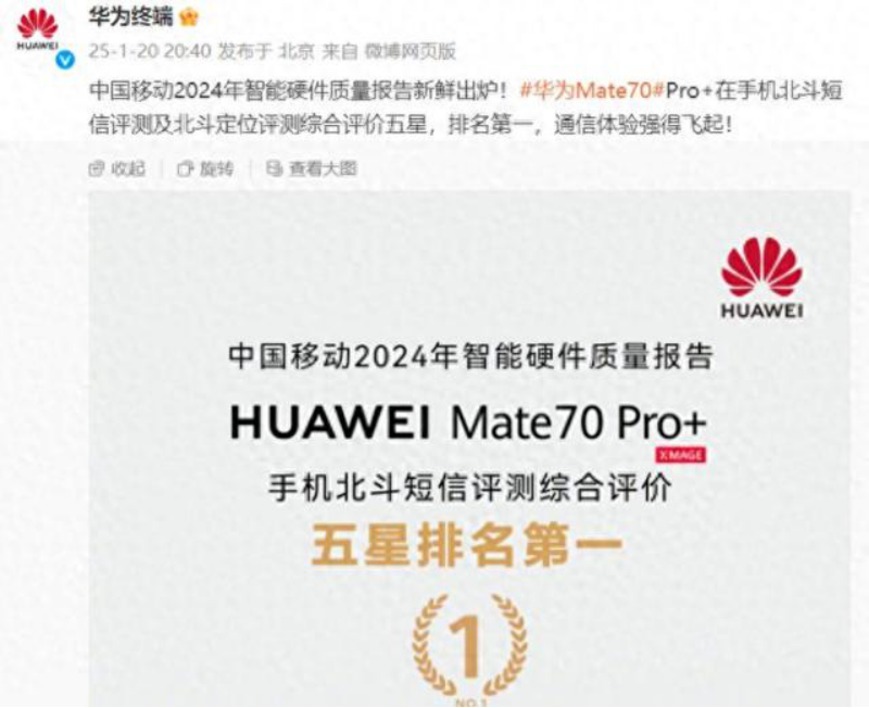 1月20號(hào),據(jù)中國(guó)移動(dòng)2024年智能硬件質(zhì)量報(bào)告顯示,華為Mate70 Pro+在北斗短信和北斗定位兩項(xiàng)評(píng)測(cè)中雙雙拿下了第一名,展現(xiàn)出非常強(qiáng)的技術(shù)和實(shí)力。這款搭載雙衛(wèi)星通信技術(shù)的旗艦機(jī),到底有什么過人之處?