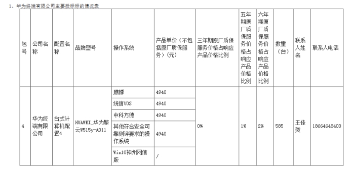 另外,華為終端以288.99萬(wàn)元位列第二,產(chǎn)品單價(jià)4940元,中標(biāo)數(shù)量585臺(tái)。與紫光僅差不到6個(gè)百分點(diǎn)。華為擎云W515系列繼續(xù)走ARM路線。